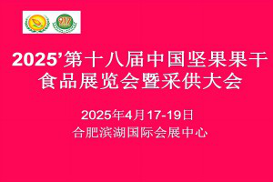 2025年第18届中国坚果果干食品展览会暨采供大会将于2025年4月17-19日在合肥滨湖会展中心举办。规模再创历史新高,八大展馆、二十大展区,12万展示面积,嘉年华体验区 2 万平方米,多功能发布区 1 万平方米;汇集全球产业链近 2500+家展商,超万款产品,预计将吸引国内外超 10 万人次的供应商、采购商亲临现场,精准聚焦采购,现场订货成交额将再创新高!