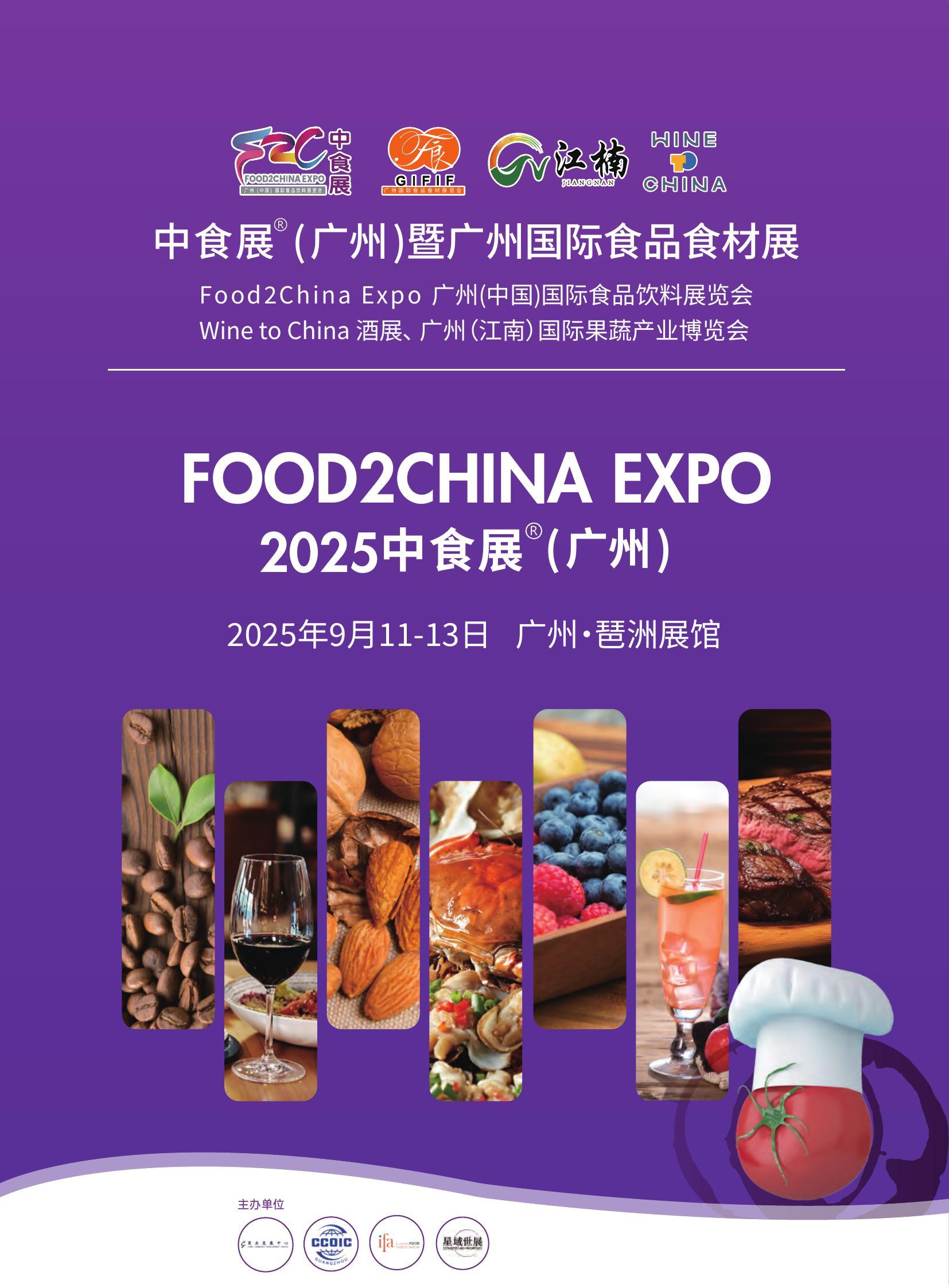 2025中食展(广州)暨广州国际食品食材展、Food2China Expo广州(中国)国际食品饮料展览会、Wine to China酒展、广州(江南)国际果蔬产业博览会将于9月11-13日在广州琶洲展馆举行。全球各地上万个高口碑、高复购率、特色化的食品全产业链精品将集中亮相。