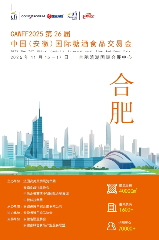 第二十六届安徽糖酒会将于2025年5月9-11日在合肥滨湖国际会展中心盛大举办。中国(安徽)国际糖酒食品交易会(简称安徽糖酒会),是中国酒食行业举办历史较早的B2B专业展会之一,其展会规模、展会实效、参展国家、参展商、参观人数均名列行业前茅,已发展成为中国酒食领域最具知名度和权威性的展览会之一,成为企业开拓安徽乃至华东市场必参的行业盛会。