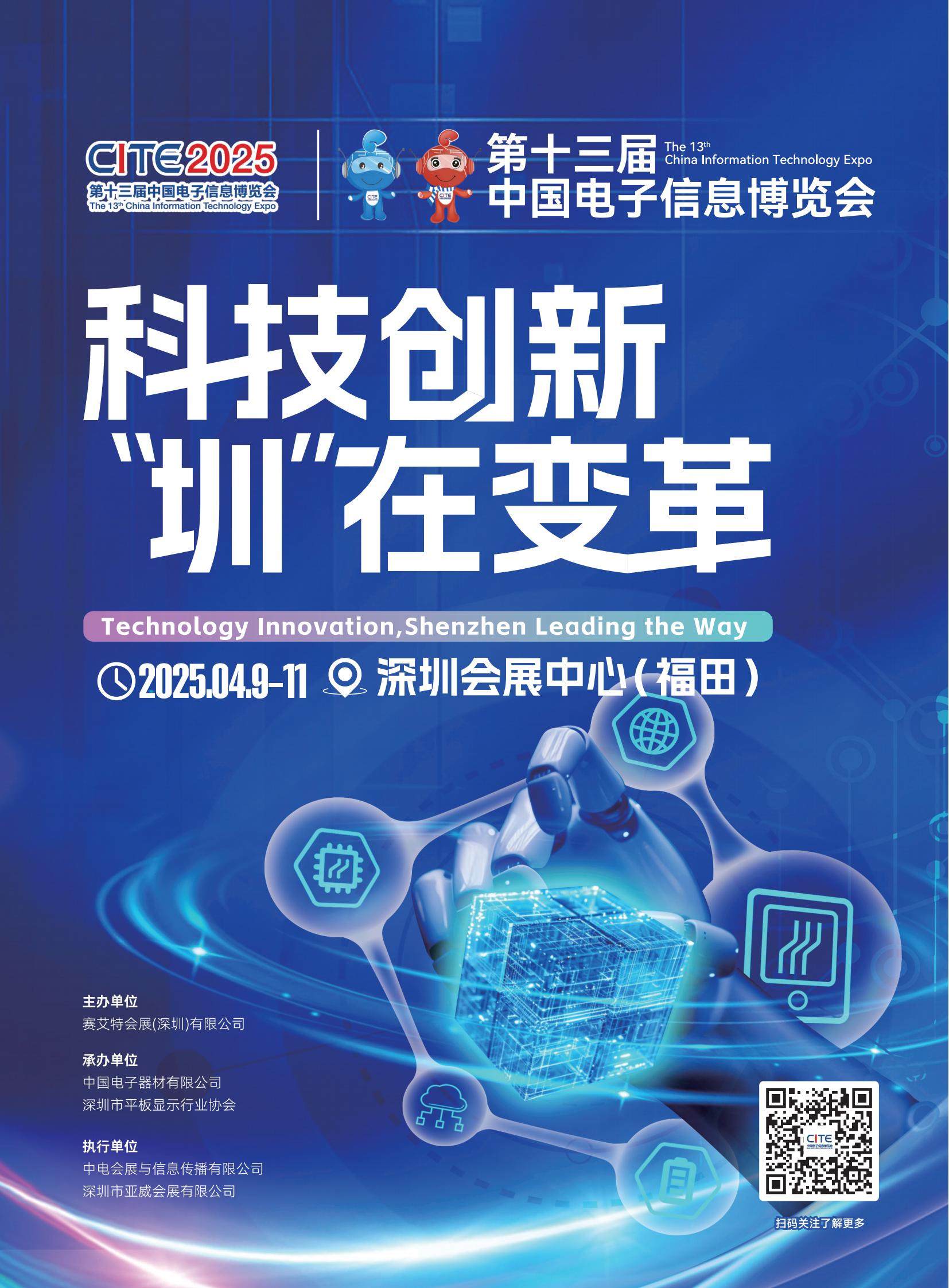 中国电子展始于1964年,是中国历史最悠久、最权威的电子行业展会。中国电子展以领先的基础电子技术,促进中国电子产业自主创新,与中国电子产业共同成长。完善的战略布局。中国电子展春夏秋三季配合,布局华南-中西部-华东,全年展览规模达到15万平方米,服务于3C、工业和国防等应用行业,助你全面拓展中国市场,赢得更多商机。 展会时间:2025年4月9日-11日 展会地址:深圳会展中心 (深圳市福田中心区福华三路) 展会规模:面积10万平米,展商1700余家,展位q3600多个,观众近10万人次 中国电子展(CEF)――中国电子第一大展