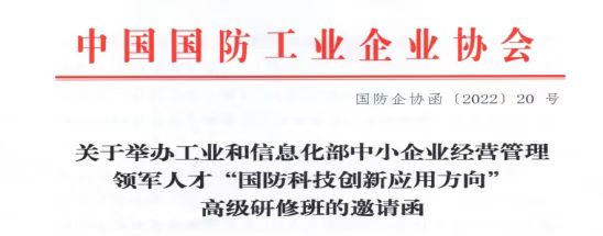 根据《工业和信息化部办公厅关于做好2021-2022年度中小企业经营管理领军人才培训工作的通知》精神,工信部启动中小企业经营管理领军人才培训工作,以“船舶与海工装备”、“航空工业”“商业航天”“电科与兵装”等国防相关应用领域,举办中小企业经营管理领军人才“国防科技创新应用方向”高级研修班。