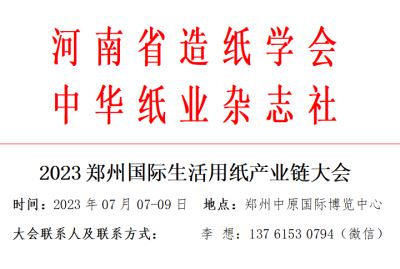 由河南省科学技术协会批准,河南省造纸学会、中华纸业杂志社、上海达富展览服务有限公司计划于2023年7月份在郑州举办“2023郑州国际生活用纸产业链大会”